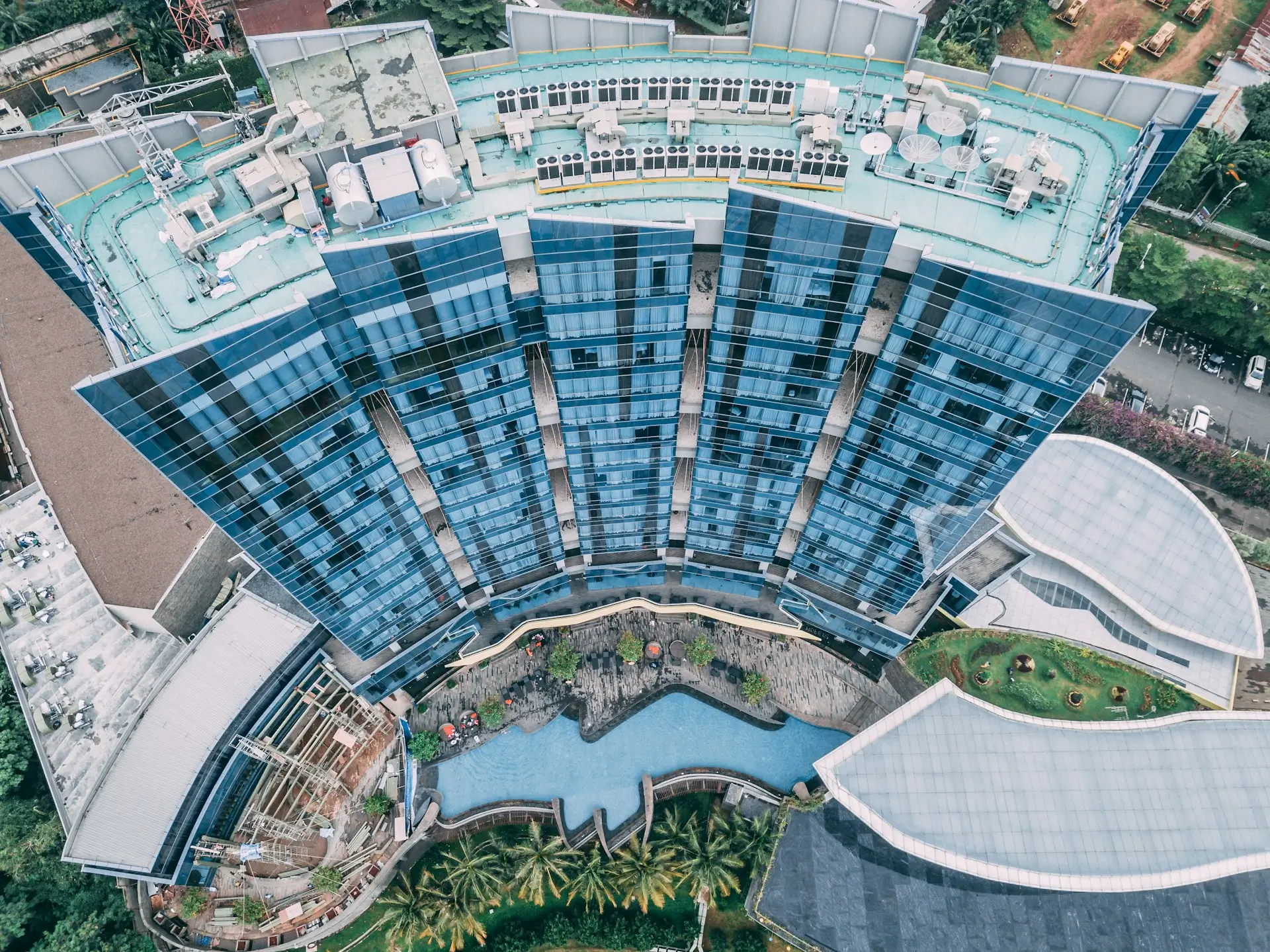 Amenities: Spa, gym, rooftop bar, and flexible conference spaces.